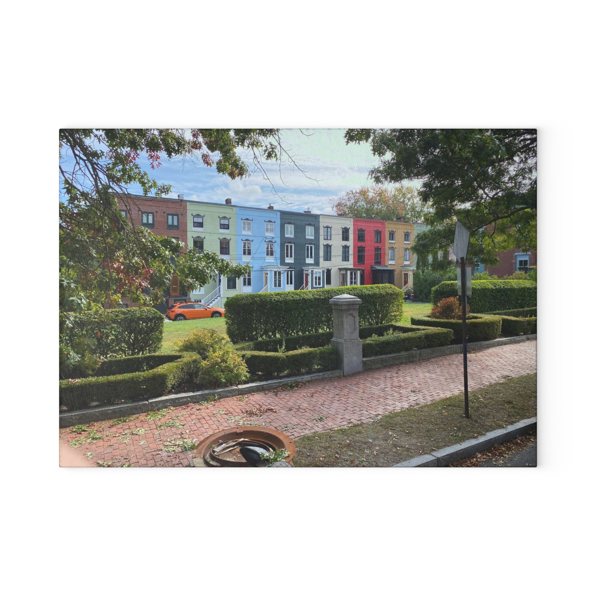 “Harbor Haze” – Glass Cutting Board A misted shoreline moment from Portland, Maine