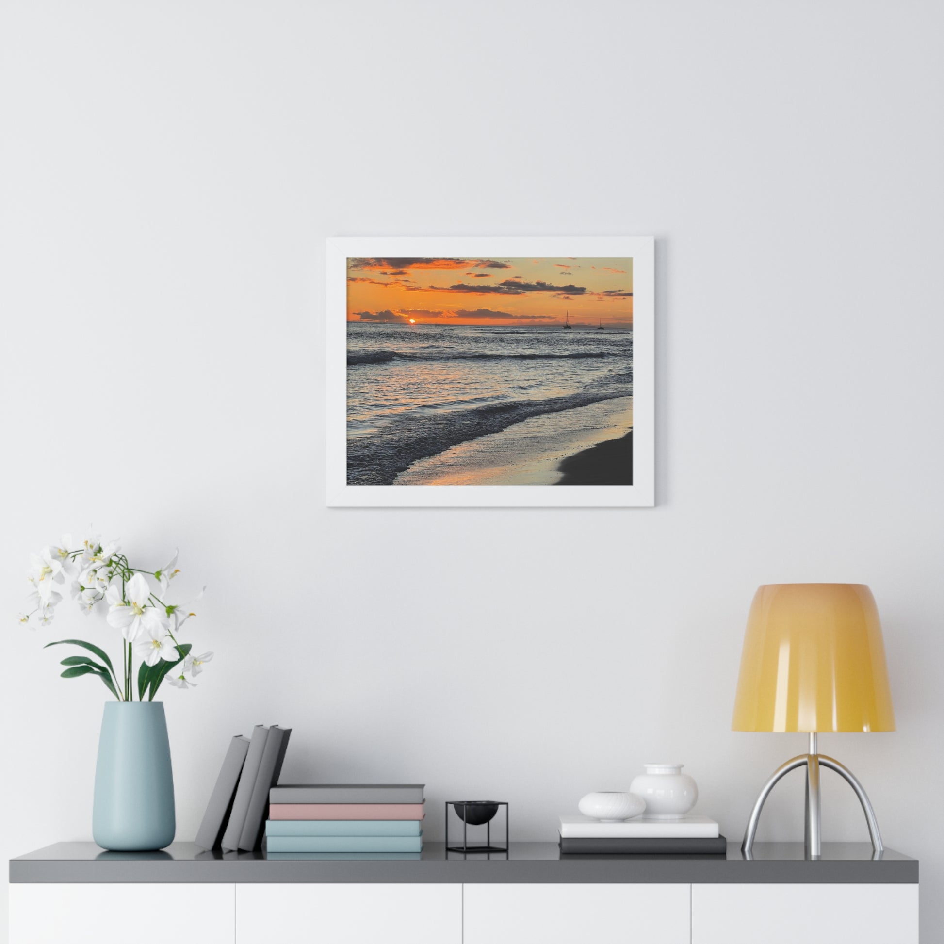 Sunset Beach Framed Horizontal Poster - Coastal Home Decor